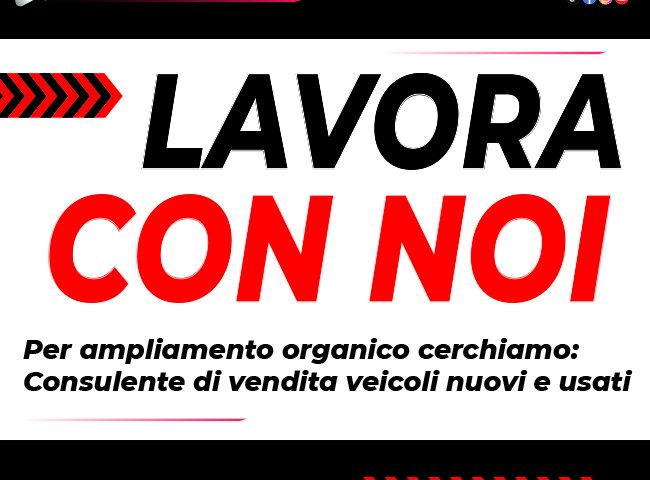 Per ampliamento organico, ricerchiamo consulente alle vendite veicoli nuovi ed usati.